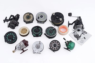 Lot 170 - A collection of fishing reels; and a selection of spare spools