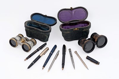 Lot 154 - A collection of pens and pencils; together with opera glasses