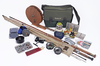 Lot 168 - A selection of fishing tackle; a Wychwood tackle bag and contents