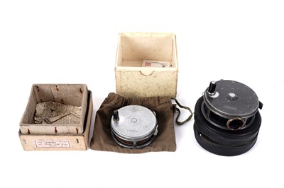Lot 160 - A Hardy ‘Perfect’ fly reel, 3 3/8; and another Hardy ‘Perfect’ fly reel, 3 5/8