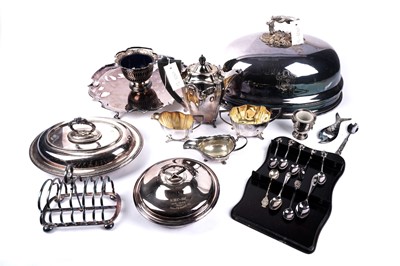 Lot 424 - A selection of antique and later silver plated wares