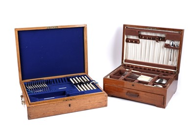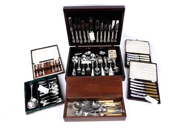 Lot 420 - A 20th Century oak canteen and a selection of silver plated cutlery