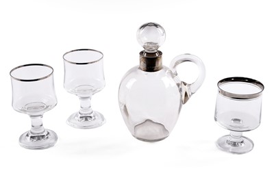 Lot 410 - An early 20th Century silver collared glass decanter and three goblets