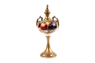 Lot 332 - A Royal Worcester twin handled vase and cover with hand-painted decoration