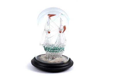 Lot 403 - A late 19th Century spun glass frigger in the form of a ship, in glass dome