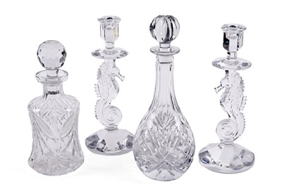 Lot 419 - A pair of Waterford Crystal 'Seahorse' pattern candlesticks; and two decanters