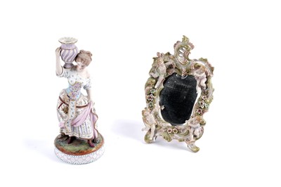 Lot 379 - A 19th Century bisque figural study of a female; and a porcelain mirror