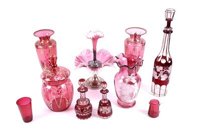 Lot 395 - A collection of Victorian and later cranberry glass