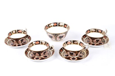 Lot 347 - Four Royal Crown Derby 1128 ‘Imari’ pattern teacups and saucers; and a sugar bowl