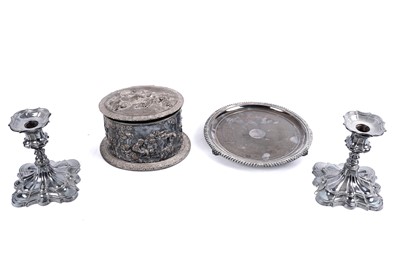 Lot 435 - A pair of 19th Century silver plated dwarf candlesticks; and other silver plated wares