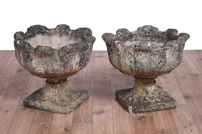 Lot 437 - A pair of composite garden urns