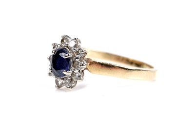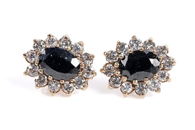 Lot 645 - A pair of sapphire and white stone cluster earrings