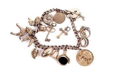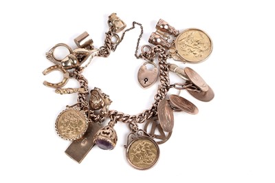 Lot 649 - A 9ct yellow gold bracelet set with a sovereign and other charms