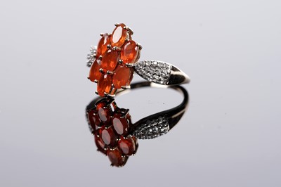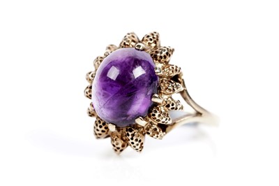 Lot 625 - A smoky quartz cocktail ring; and a garnet single stone ring