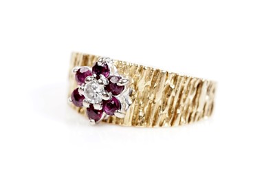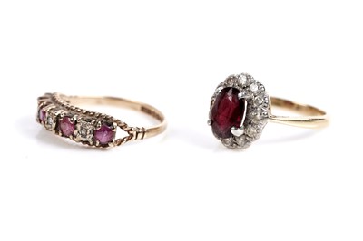 Lot 623 - A garnet and diamond cluster ring; and a ruby and diamond ring