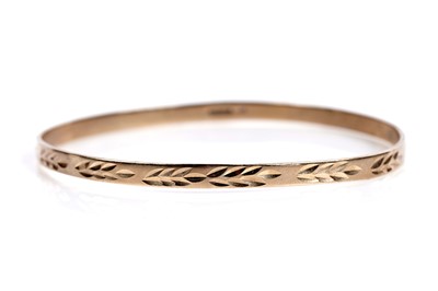 Lot 628 - A 9ct yellow gold leaf pattern bangle