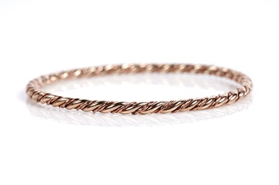 Lot 630 - A 9ct rose and yellow gold twist pattern bangle