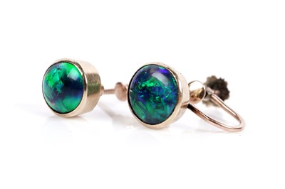Lot 664 - A pair of black opal cabochon screwback earrings