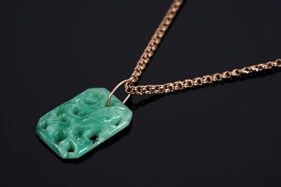 Lot 681 - A reticulated fish patterm jade style pendant necklace