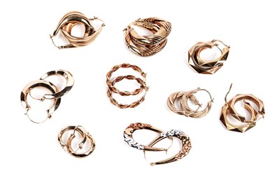 Lot 644 - A selection of nine pairs of 9ct gold hoop earrings
