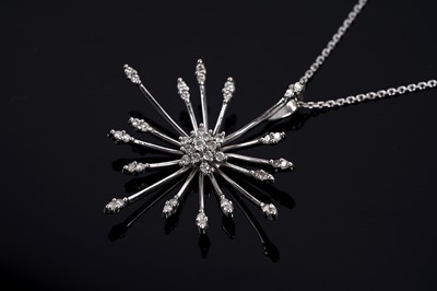 Lot 684 - A diamond cluster sunburst pendant necklace