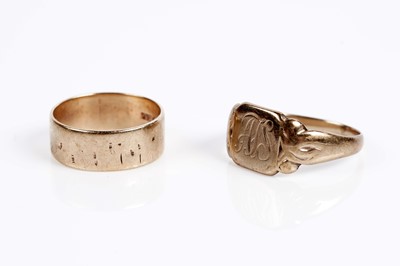 Lot 633 - A 9ct yellow gold signet ring; and a 9ct yellow gold wedding band