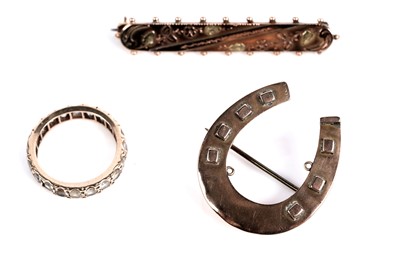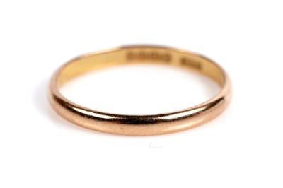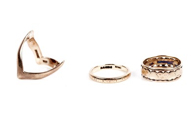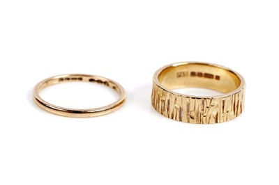 Lot 634 - Two gold wedding bands; and a wishbone band