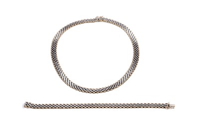 Lot 659 - A 9ct white and yellow gold chain necklace; and bracelet set