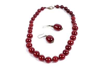 Lot 671 - A set of three malachite bead necklaces; and a pair of cultured pearl earrings