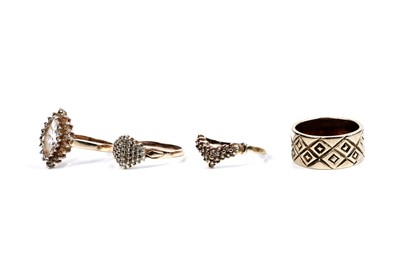 Lot 194 - Three rings including: a peridot flower pattern cluster