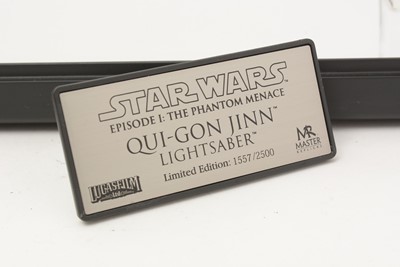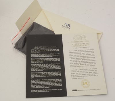 Master Replicas Star Wars Limited Edition SW-151 Qui-Gon Jinn Lightsaber from Episode I: The Phantom Menace. Limited Edition number 1557/2500, 1:1 full scale replica, boxed.