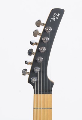 A Parker P-36 electric guitar, made in Indonesia, with maple neck and fretboard, translucent blond finish, fitted with two single coil pickups, Parker gigbag.