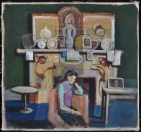 Lot 1392 - Fred Atkinson Interior scene of a fireplace...