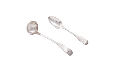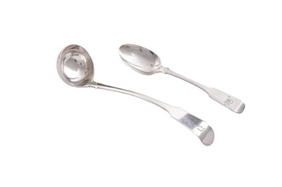 Lot 228 - A Scottish provincial silver Fiddle pattern toddy ladle and teaspoon