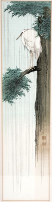 Lot 126 - Shoda Koho - Egret on a tree | woodblock print